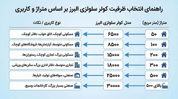 راهنمای انتخاب ظرفیت مناسب کولر سلولزی البرز بر اساس متراژ