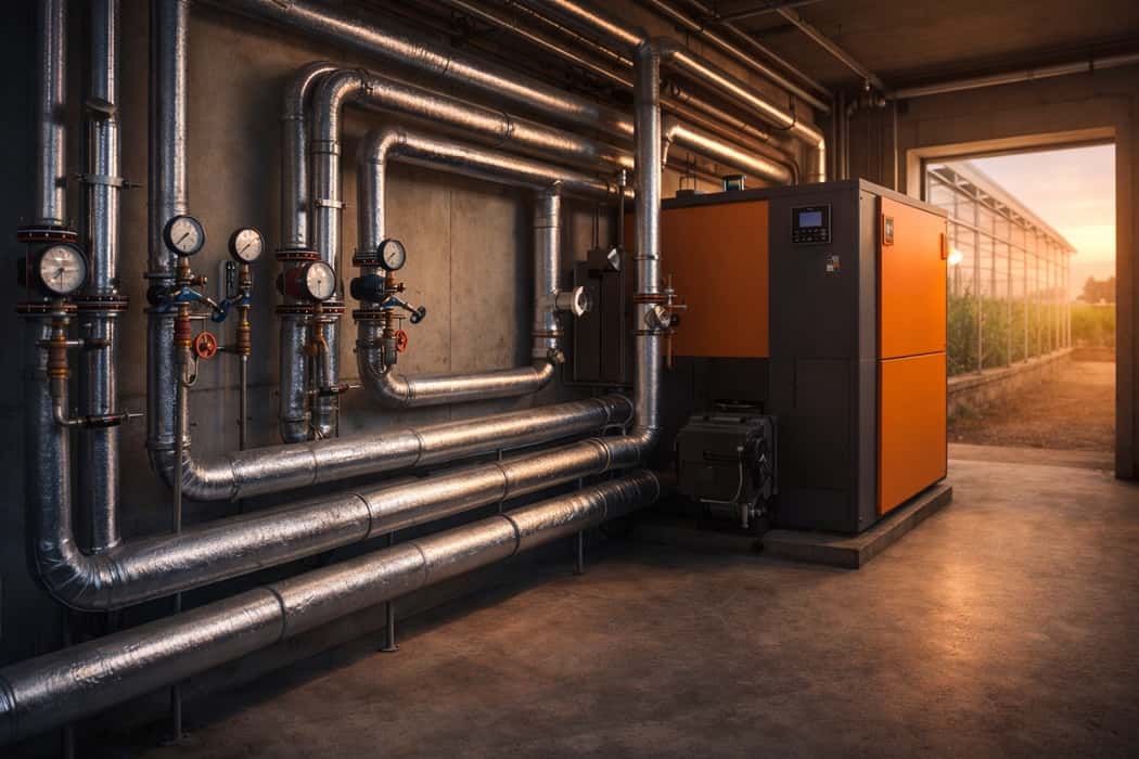 در گلخانههای صنعتی و مجموعههای بزرگ، به جای استفاده از چند دستگاه مستقل، از سیستم گرمایش مرکزی بر پایه دیگ آب گرم یا بخار استفاده میشود. در این ساختار، یک یا چند دیگ در موتورخانه نصب میشود و گرما از طریق لولههای فولادی، رادیاتور یا لولههای محیطی در امتداد ردیفهای کاشت توزیع میگردد. منابع بینالمللی این روش را به عنوان یکی از پایدارترین سیستمها برای کنترل دقیق دما در پروژههای بزرگ معرفی میکنند.