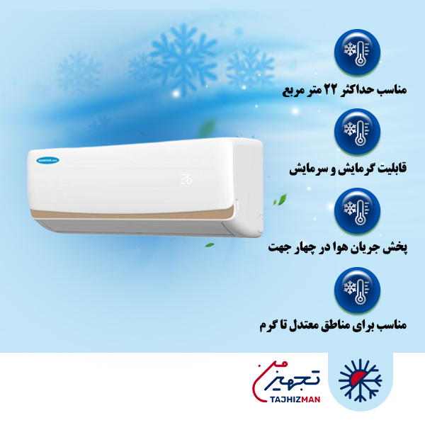 - کولرگازی جنرال گلد سردوگرم مدل GG-S۱۲۰۰۰: این نوع از کولرگازی به دلیل وجود پرههای ضد فرسایش GOLD FIN معروف شده است. این کولر مناسب محیطهای گرم و خشک بوده و میتواند یک محیط ۲۲ متری را خنک کند.