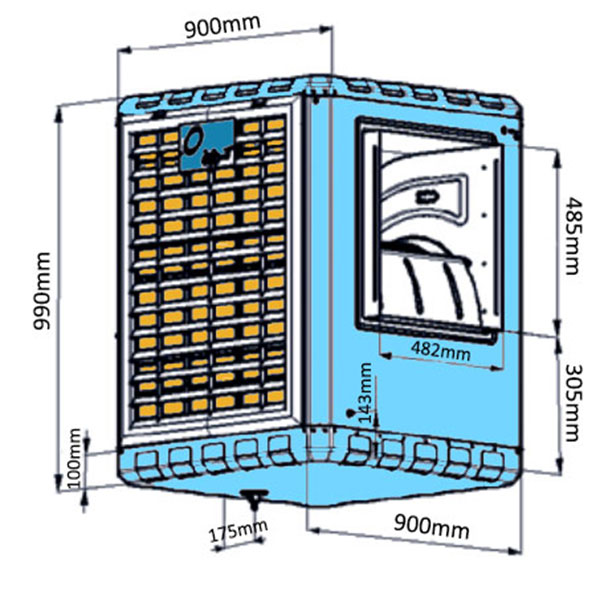 ابعاد کولر: همه کولرها دارای طول، عرض و ارتفاع هستند. اصولاً هرچه حجم کولر بیشتر است، میزان خنککنندگی آن نیز بیشتر میشود. در مورد کولر سلولزی ۶۰۰۰ ابعاد محصول به طور معمول، طول ۹۰، عرض ۹۰ و ارتفاع ۱۰۰ سانتیمتر است. البته برندهای مختلف در زمان تولید یک بازه ±۵ را رعایت میکنند، یعنی ابعاد کولر ۵ سانت بیشتر یا کمتر ساخته میشود؛ مثلا ابعاد کولر سلولزی ۶۰۰۰ ایران شرق ۱۰۵*۹۳*۹۳ است که کمی از حد استاندارد بیشتر است؛ اما تقریباً همه محصولات ابعادی یکسان دارند.