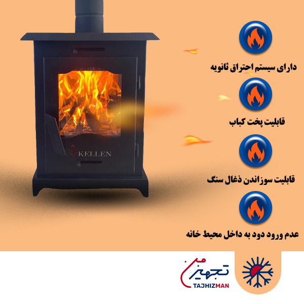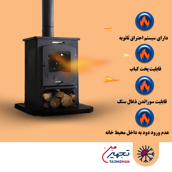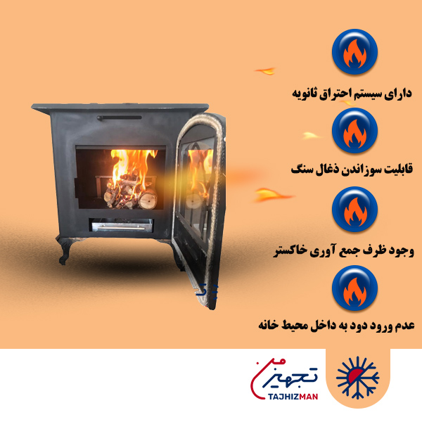 قابلیت تنظیم کنترل شعله سوختن چوب