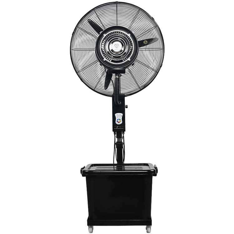 پنکه مه پاش ایستاده مخزن دار با قطر پره 65 سانتی متر ،با طراحی زیبا ، ریموت کنترل از راه دور ، قابلیت چرخش 90 درجه افقی و قدرت پرتاب باد 5 تا 8 متر مناسب خنک کردن انواع محیط های تفریحی باز و نیمه باز نظیر :