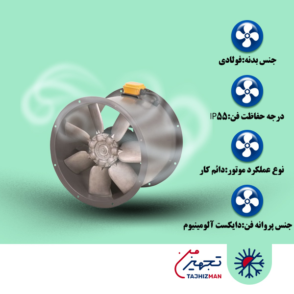 کاربرد فن نصب در سیستم تهویه فضاهای تجاری متوسط و بزرگ، فضاهای صنعتی، کارگاه ها،تامین هوای پارکینگ ها و انبارهای صنعتی