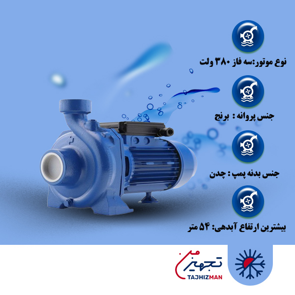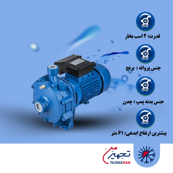 بدنه این پمپ  از استحکام بالایی برخوردار می باشد و فشار آب کافی را برای مصارف مورد نظر تامین می کند،و با توجه به نوع برق مصرفی به دو نوع تکفاز و سه فاز تقسیم بندی میشود که در انتهای مدل حک خواهد شد و این پمپ از نوع تکفاز این مدل میباشد.